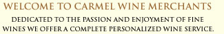 The clear difference in working with Carmel Wine Merchants is our enthusiasm and personal attention combined with our extensive knowledge of wines. As every bottle of fine wine is unique and enjoyable, each client experience is special and most important, a valued relationship.
